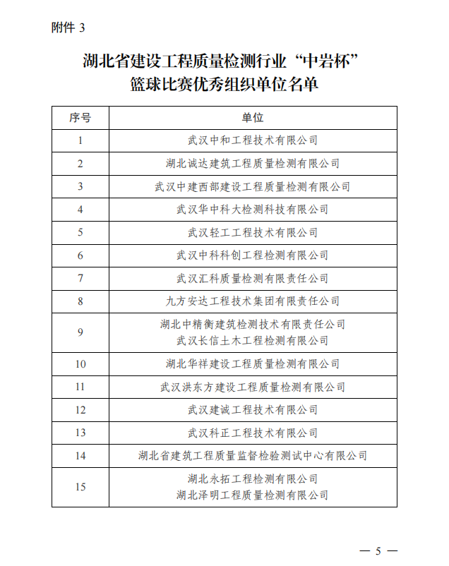 此次籃球比賽豐富了我省建設(shè)工程質(zhì)量檢測行業(yè)的員工生活,培養(yǎng)了檢測人“頑強(qiáng)拼搏、奮勇爭先”的體育競技精神,賽出了水平,賽出了風(fēng)尚,賽出了友誼,加強(qiáng)了同行之間的交流、促進(jìn)了合作,為共同推動湖北省建設(shè)工程質(zhì)量檢測行業(yè)的高質(zhì)量發(fā)展作出了貢獻(xiàn)。
